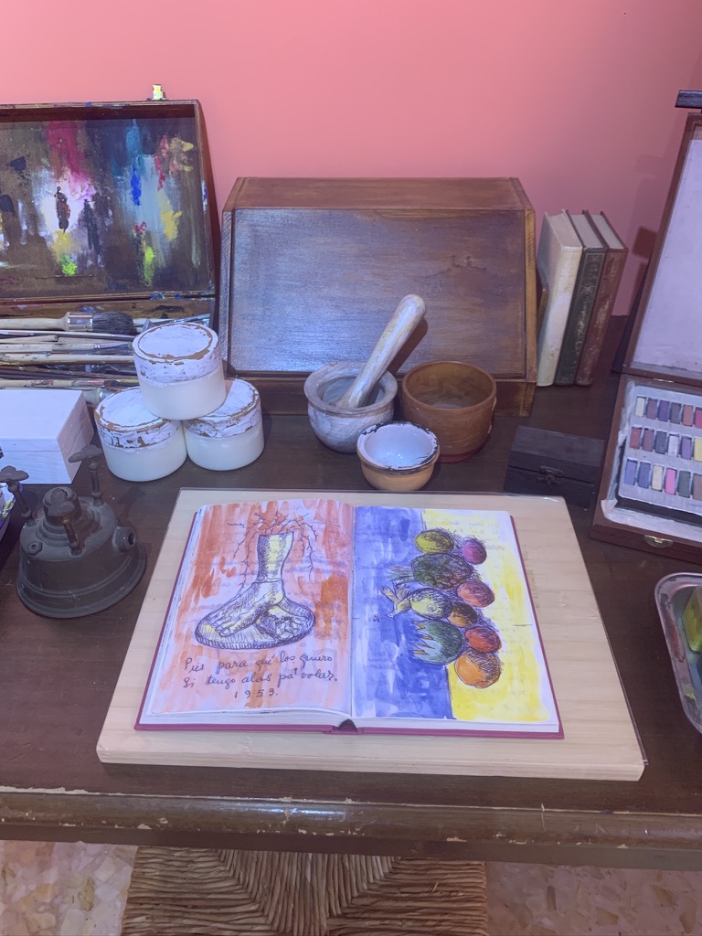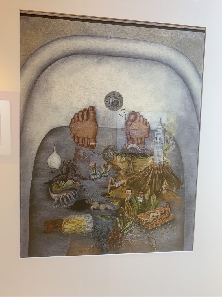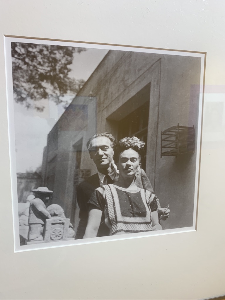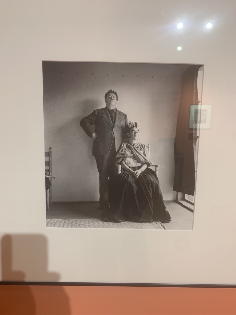 We started with the Kahlo exhibit. It showcased portraits taken by the American photographer Nicolas Muray. They were friends and also had a romantic relationship, as the letters that were on display demonstrated. In addition to the photographs, there were a few of her works, reconstructions of her clothing, and commemorative stamps issued in various countries celebrating her and her work.