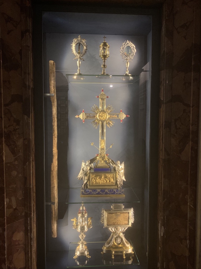 After the museum, we went next store the the papal basilica of Santa Croce in Gerusalemme. This is an important basilica for its collection of relics from the passion of Christ, such as Pilates written charges against Jesus, a nail used in the crucifixion, two thorns from the crown of thorns, and other fragments.