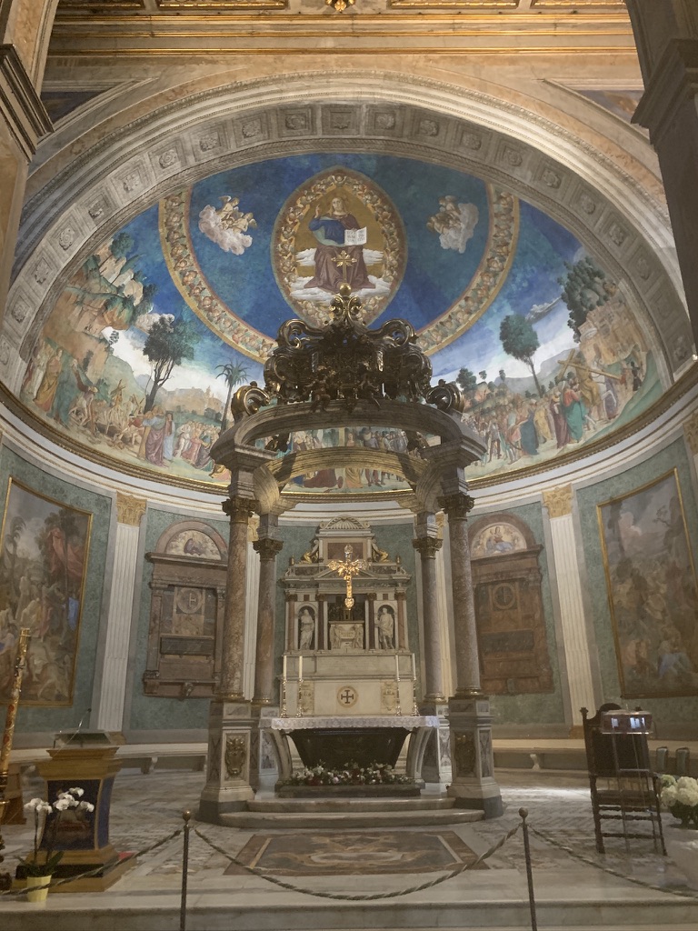 The Scala Santa, Holy Saircase, is across the street from the basilica. It is purported to be the steps leading to the Praetorium of Pontius Pilate in Jerusalem, which Jesus would have walked up to his trial. You are only allowed to go up these stairs on your knees. There are separate stairways on either side that you can take that lead to the Chiesa di San Lorenzo in Palatio ad Sancta Sanctorum. This was the personal chapel of the early popes.