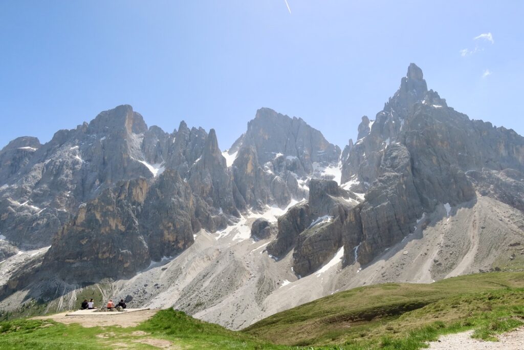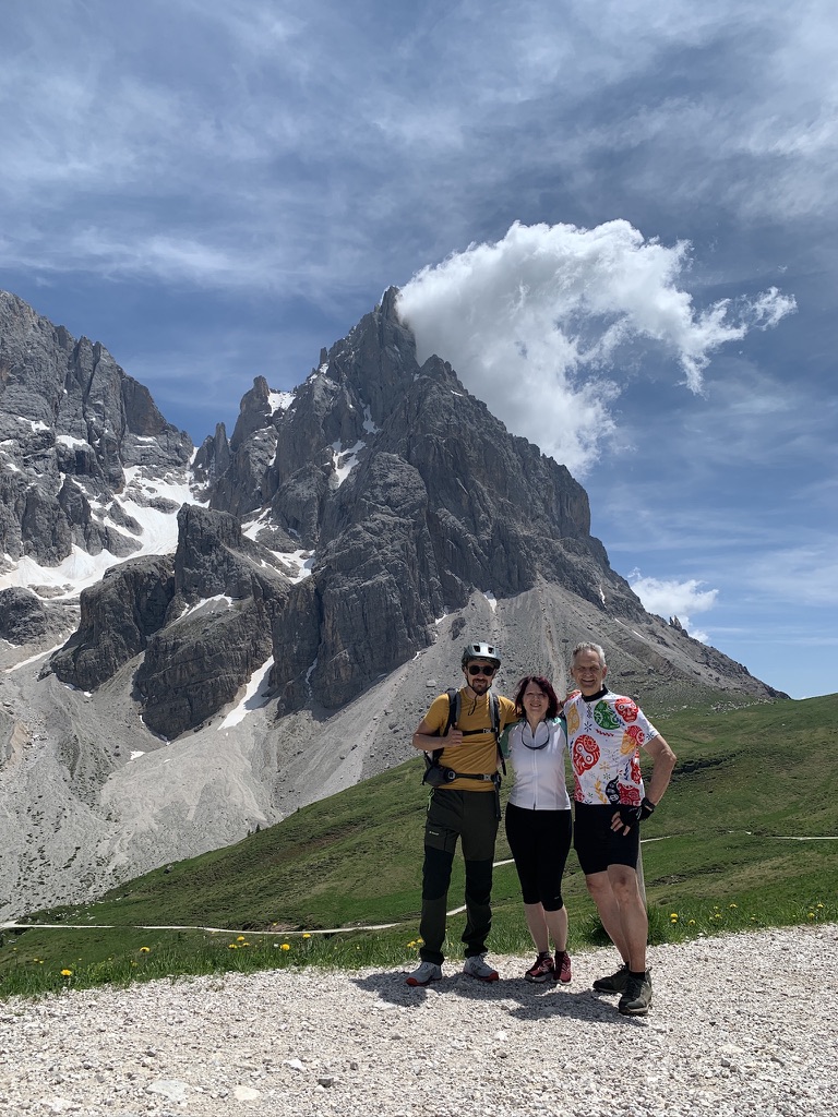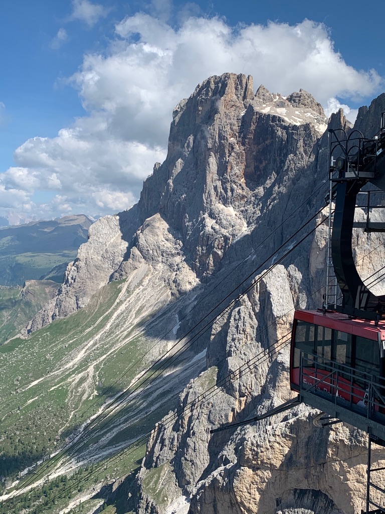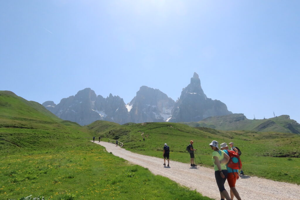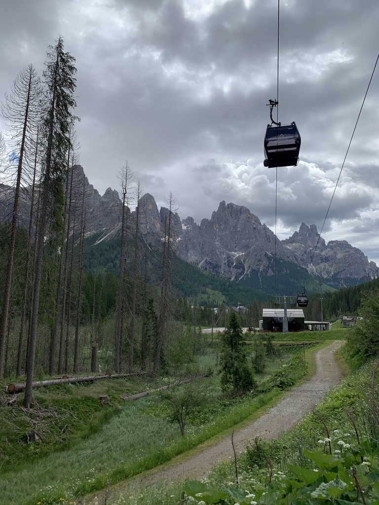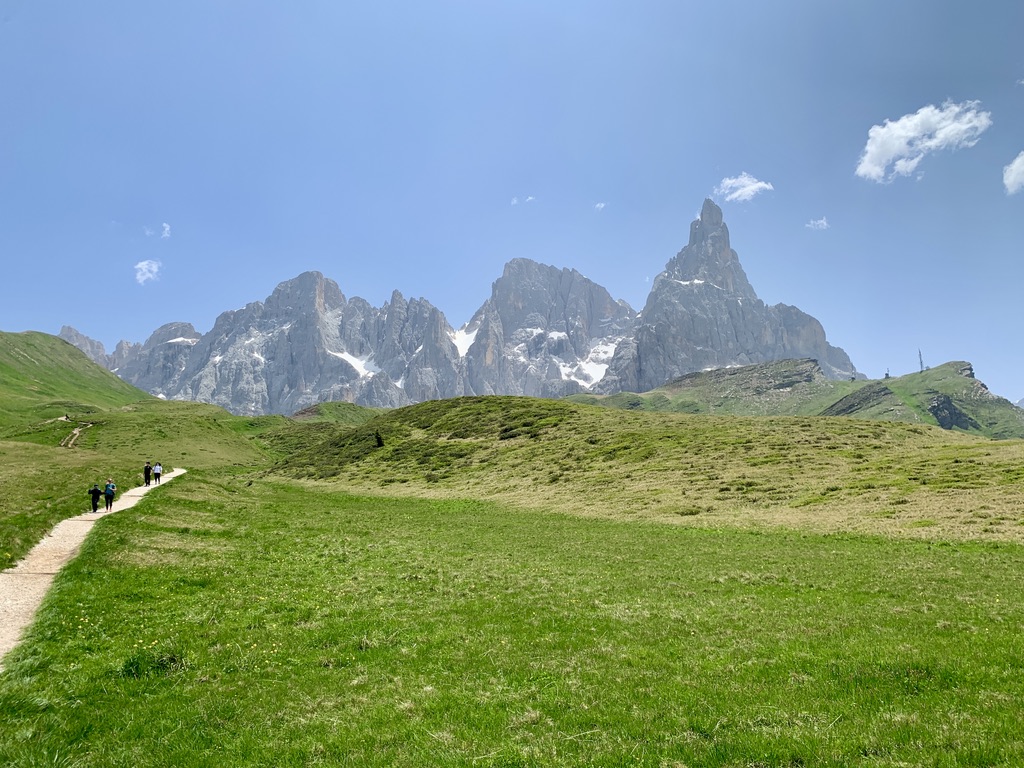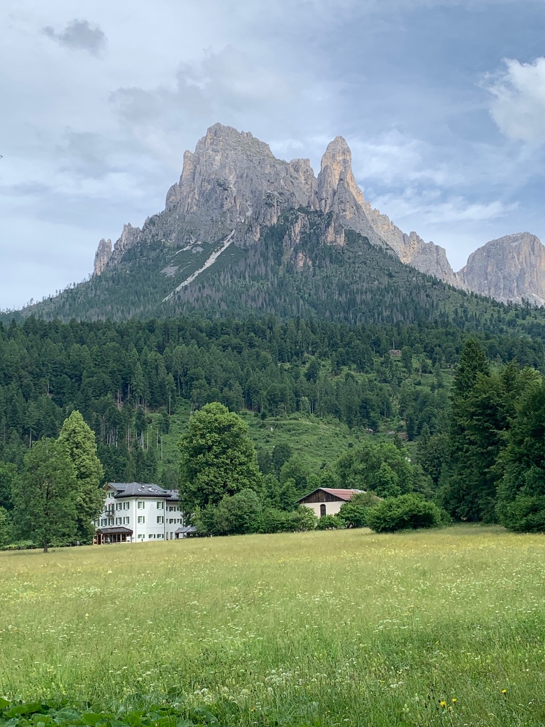 Every year our company does a settimana verde or “green week” in the mountains in northern Italy. This is the third year the The Tandem Spirits have gone with the group, which includes both current employees and retirees with their families and friends. This year, there group had 84 people. Our location was San Martino in Castrozza, in the region of Trentino Alto Adige. It is considered to be the base of the Dolomites. We all stayed in the Hotel San Martino, which was nice as we could have breakfast and dinner together every day. Our rooms were were not large, but ours had a great view of the mountains.