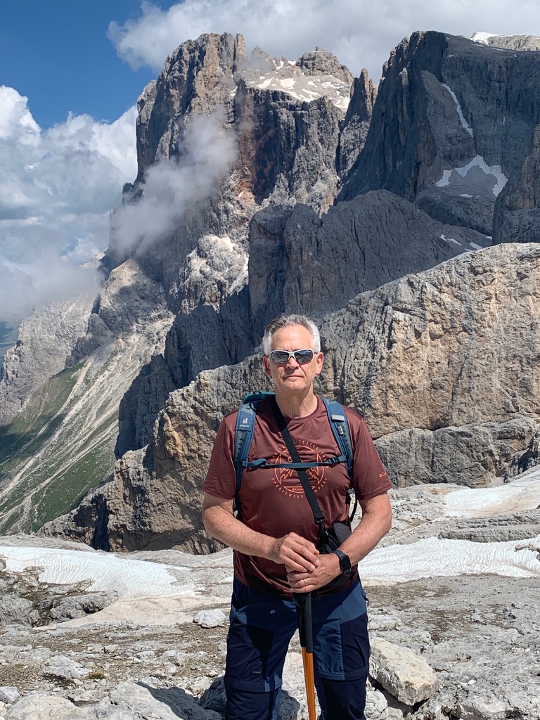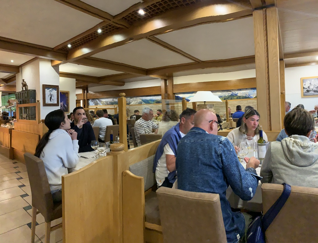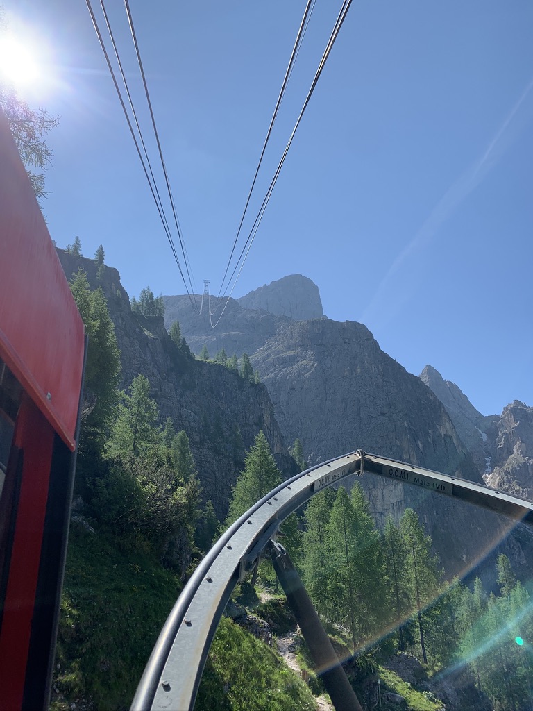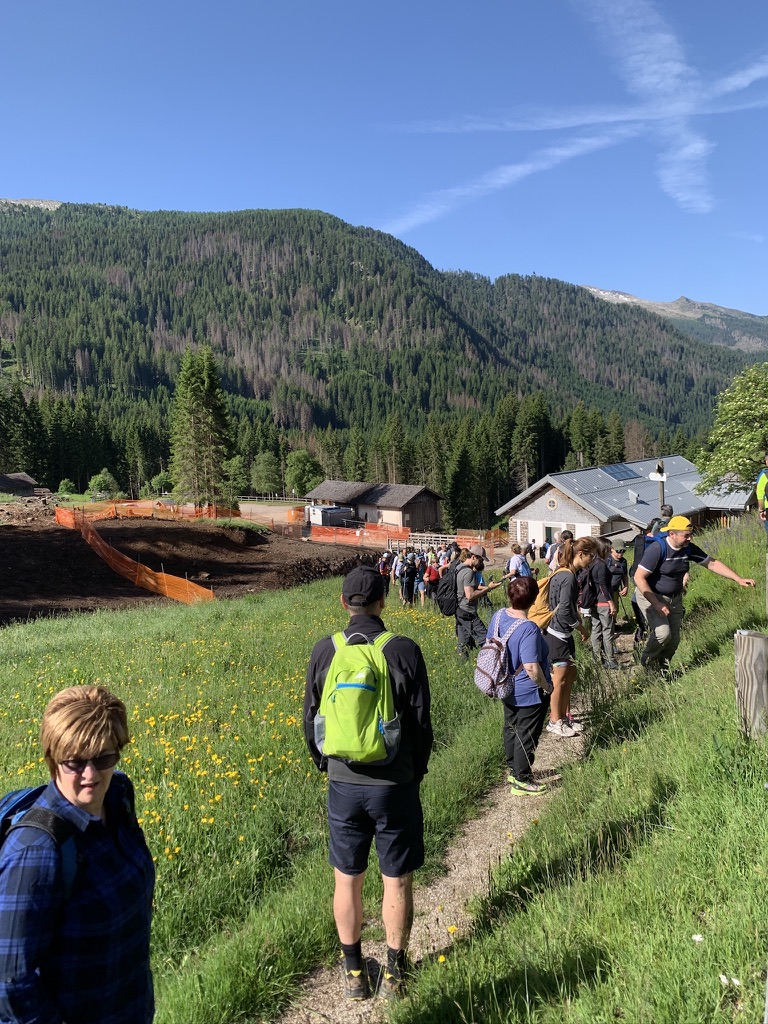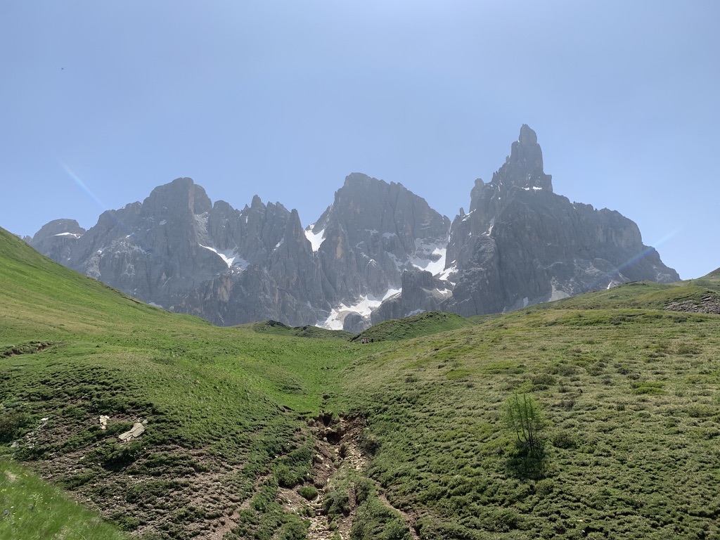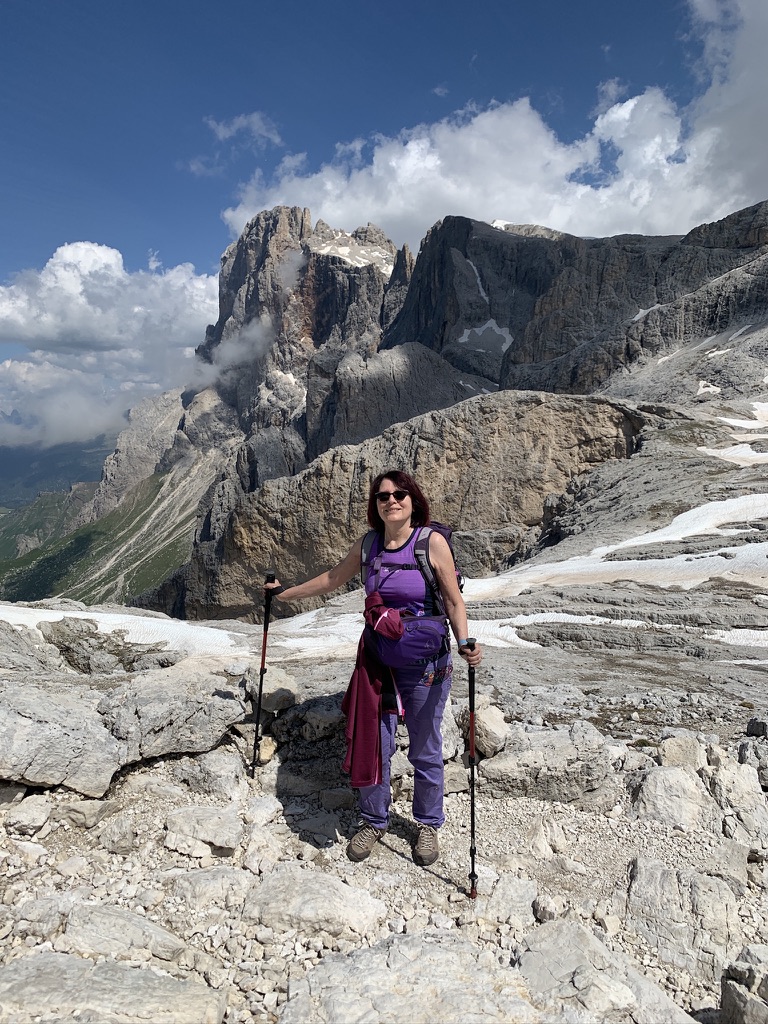 Every year our company does a settimana verde or “green week” in the mountains in northern Italy. This is the third year the The Tandem Spirits have gone with the group, which includes both current employees and retirees with their families and friends. This year, there group had 84 people. Our location was San Martino in Castrozza, in the region of Trentino Alto Adige. It is considered to be the base of the Dolomites. We all stayed in the Hotel San Martino, which was nice as we could have breakfast and dinner together every day. Our rooms were were not large, but ours had a great view of the mountains.