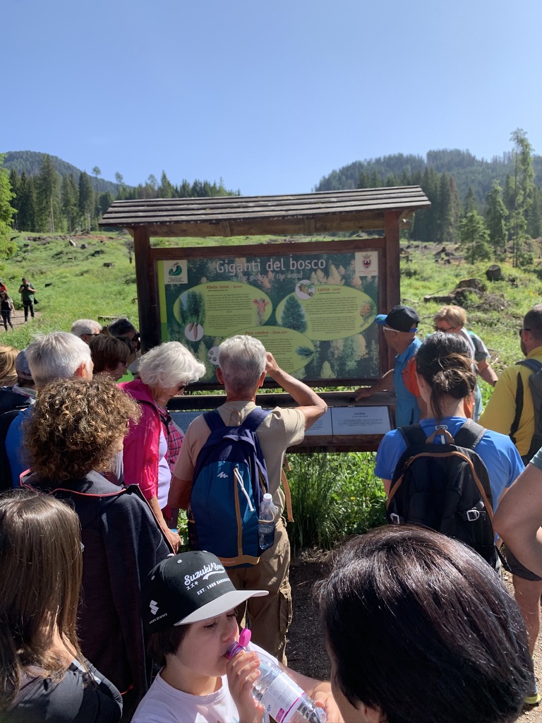 3) A visit to Villa Welsperg in the Parco Nazionale di Paneveggio, Pale San Martino. We walked along some trails and around a man-made lake. A guide from the park pointed out and discussed the various wildflowers and also talked about the particular ecosystem and traditional sheep farming in that zone. While there, we also spent some time at the Casa del Parco nature museum and library. It would be a lovely place to spend a day as it was full of fun surprises. One section had books with all of the parts of the plants and flowers in the area. Another had woodcarvings of all of the trees and their component parts, there were also “books” of the various types of rock, plus drawers to pull out with birds nests and fossils.