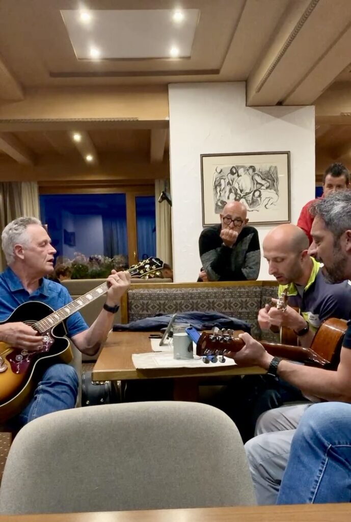 One of the things we really enjoy about our green weeks is the sense of camaraderie. After dinner people congregated either outside or in the lounge to talk, play cards, watch a soccer game or just sit and relax. James and a couple of other colleagues brought guitars and a ukulele, and it was fun to have them play both American and Italian popular songs. Even the people playing cards or watching a game would sing along.