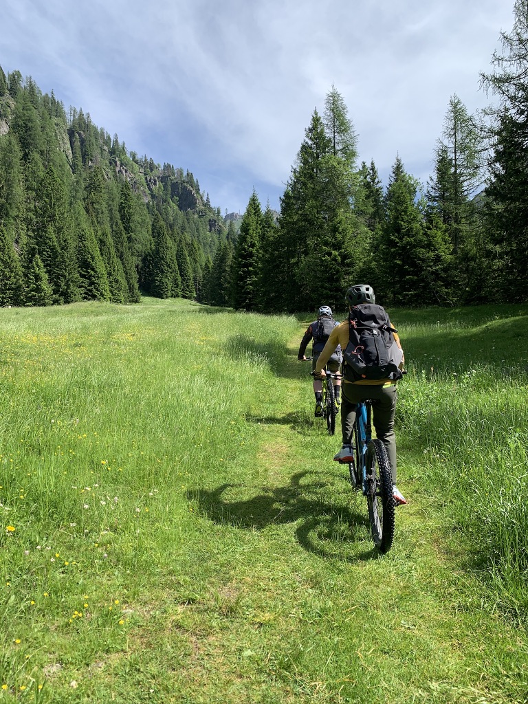 2) We had hoped to be able to rent bikes during this week, and on Wednesday, we finally had our chance. We rented bikes from Skisport and booked a tour guide to take us on a nice ride.It always takes some time to get used to rented bikes, and rented mountain bikes in particular as they’re generally larger and heavier than the bikes we’re used to riding. After awhile we were peddling along without any problems. We did some riding in the forest and some on the roads. The roads were better for Virginia as she felt a bit unstable on some of the mountain trails. It was a beautiful day for cycling. We stopped for break at a rifugio for beers and a snack. We were out for most of the day.