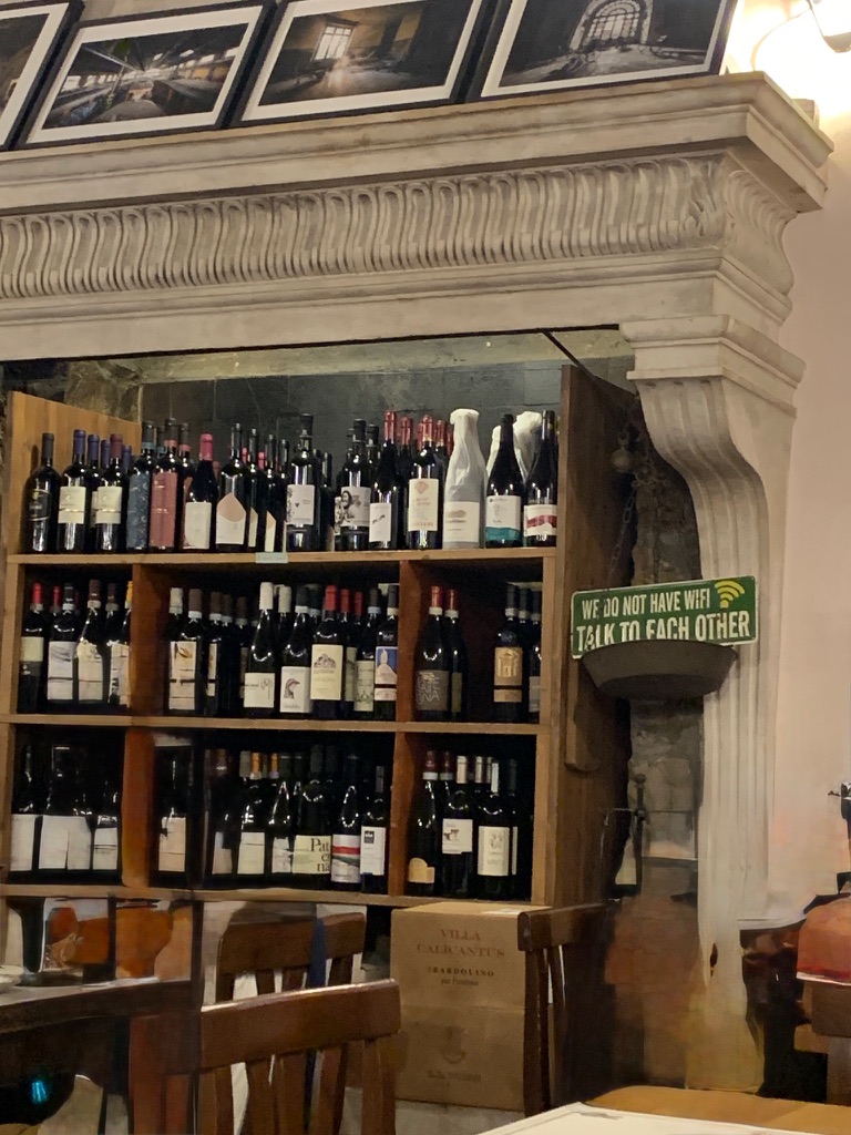 It was time to relax a bit. We were hoping to stop in at Torre d’Ercole again for aperitivo, but they were closed for vacation. (Chiuso per ferie). We did find a nice place near the Piazza della Vittoria, Bar Tinello. We ordered Aperol spritzes and we were also given green olives, potato chips, taralli, and a croissant with ham and cheese.