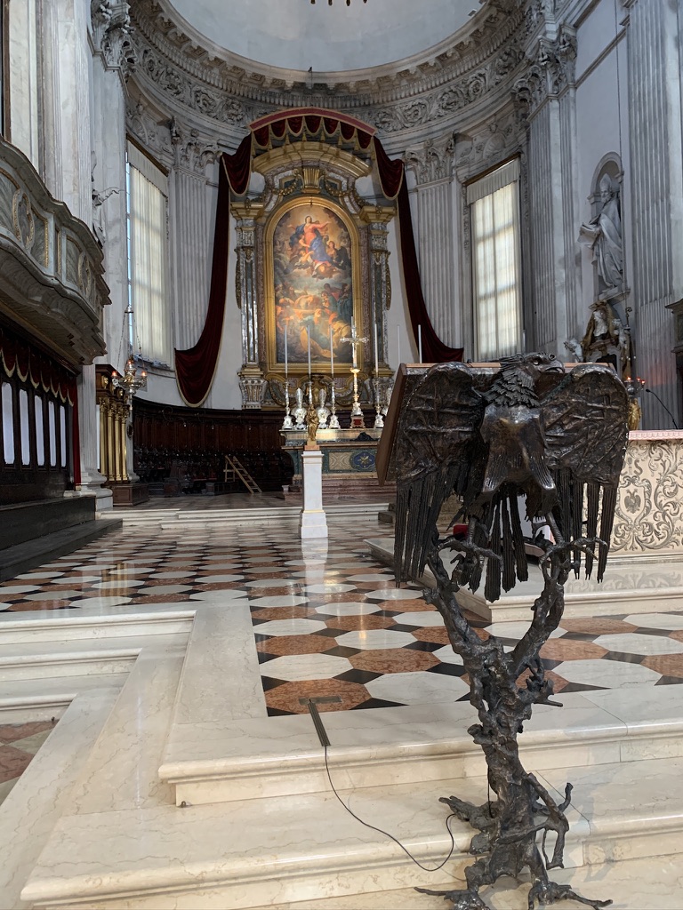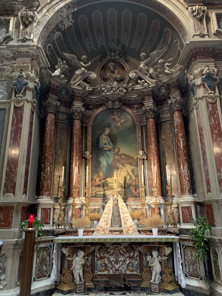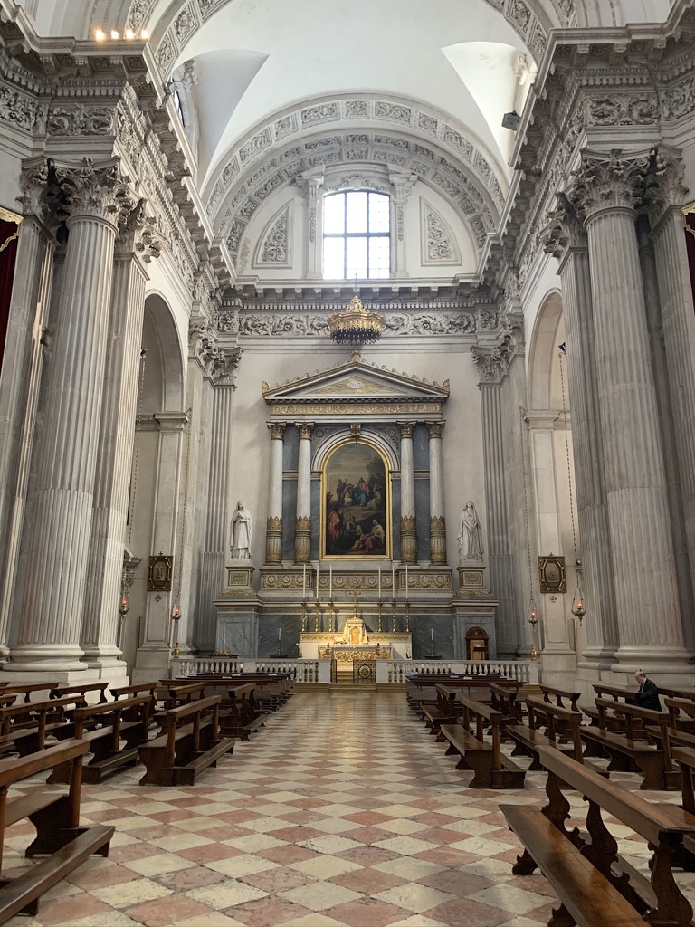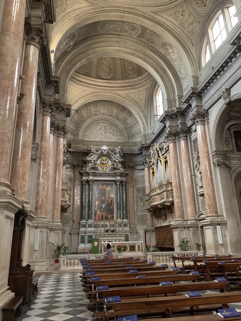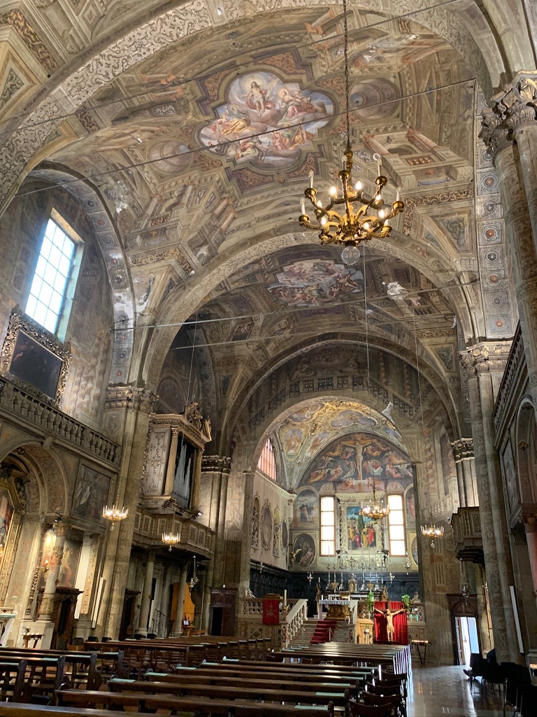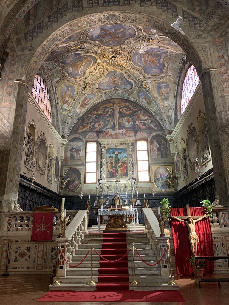 There was no traffic on the drive from Wildhaus to Brescia. We left at 10:00 as we wanted to arrive in Brescia early enough to go to the archeological park. We stayed at the same hotel, and we were given the Junior suite. This was a much larger room that also had a small kitchen. On the way into town we first stopped at Santa Maria della Pace, which was built between 1720- 1746. The large dome fills the church with a soft light that accentuates the beauty of the pink marble.