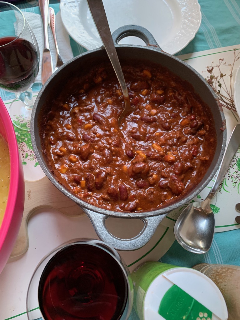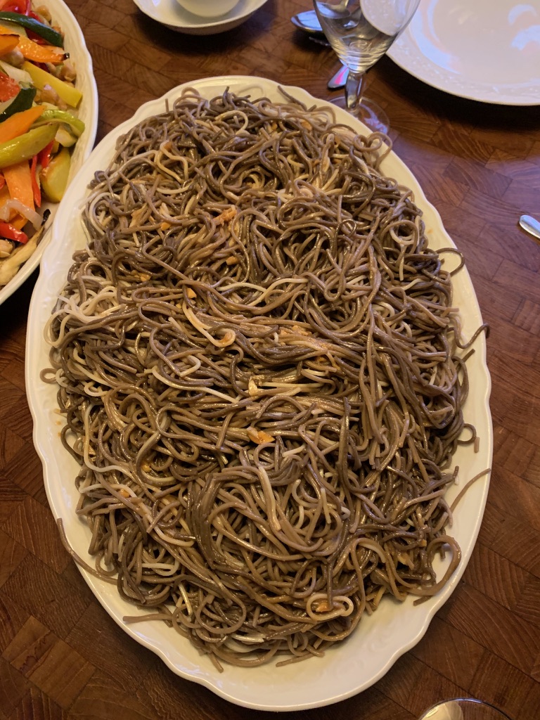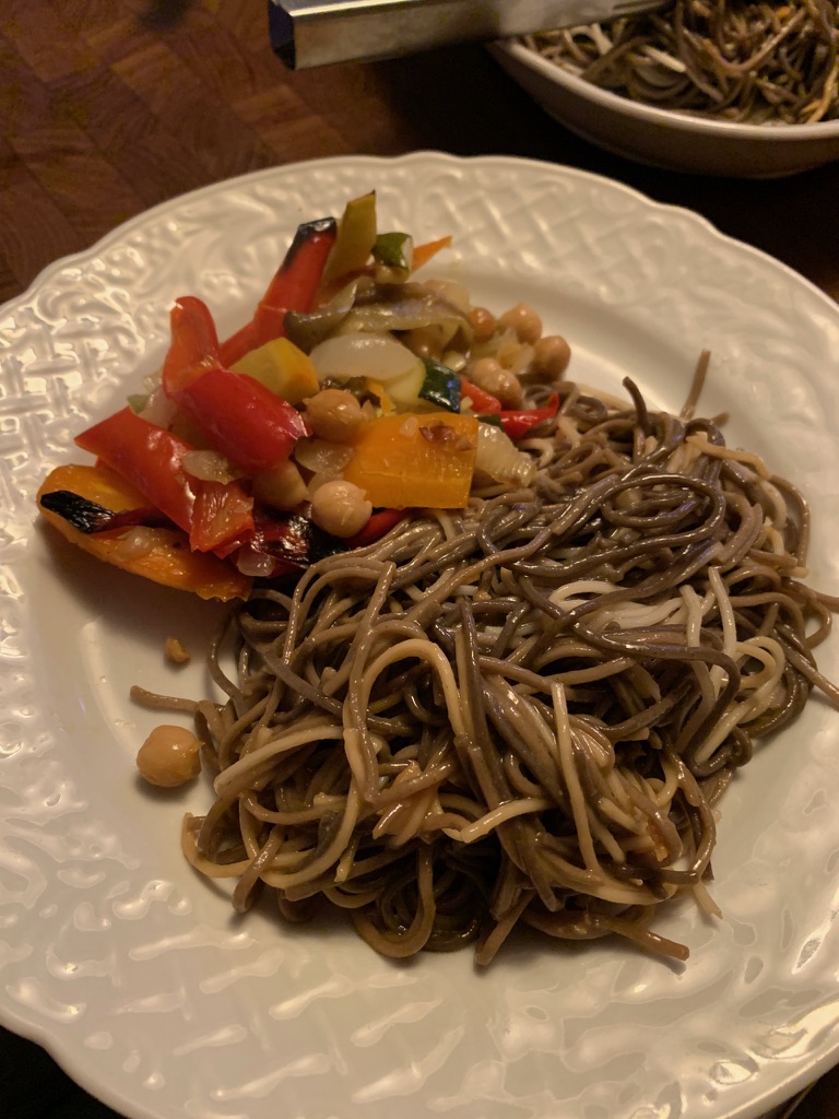 The weather was a bit dodgy on Friday with thunderstorms on and off. We went into town and did some grocery shopping and caught up on some reading. James made an excellent dinner of Asian noodles with miso sauce and roasted vegetables.