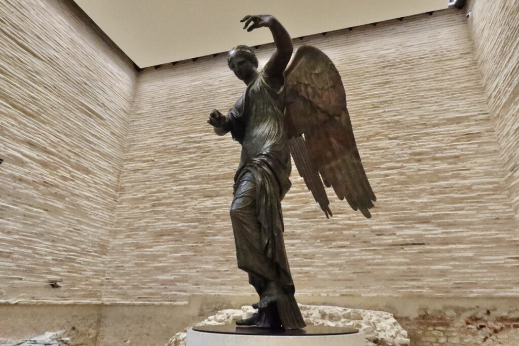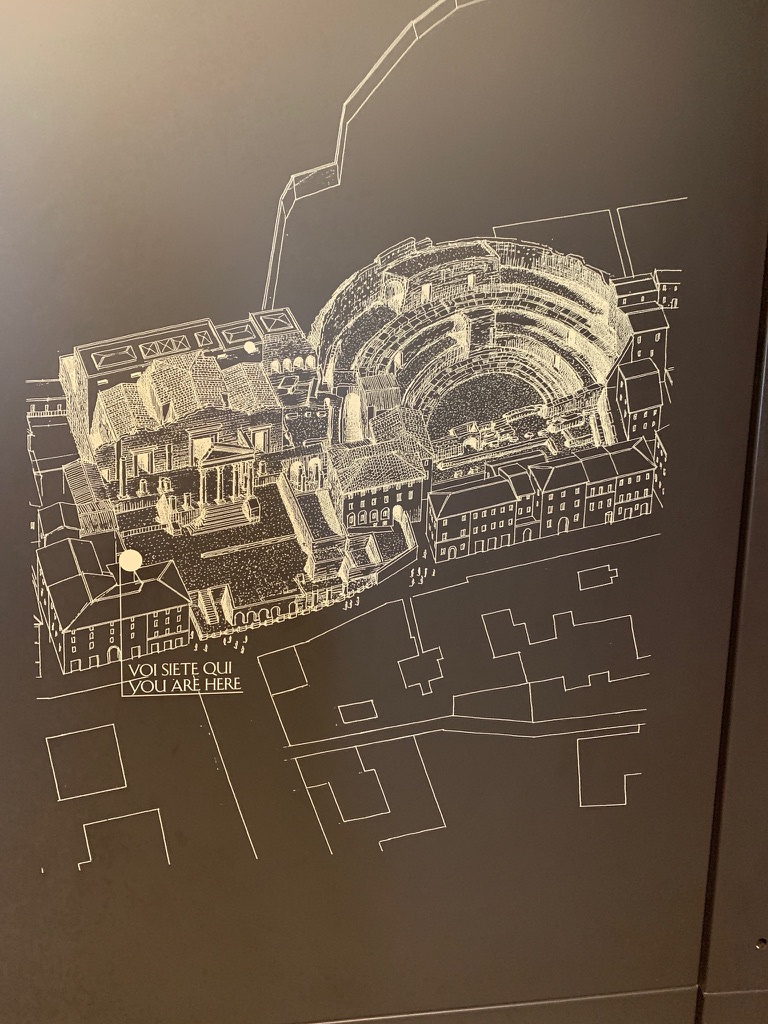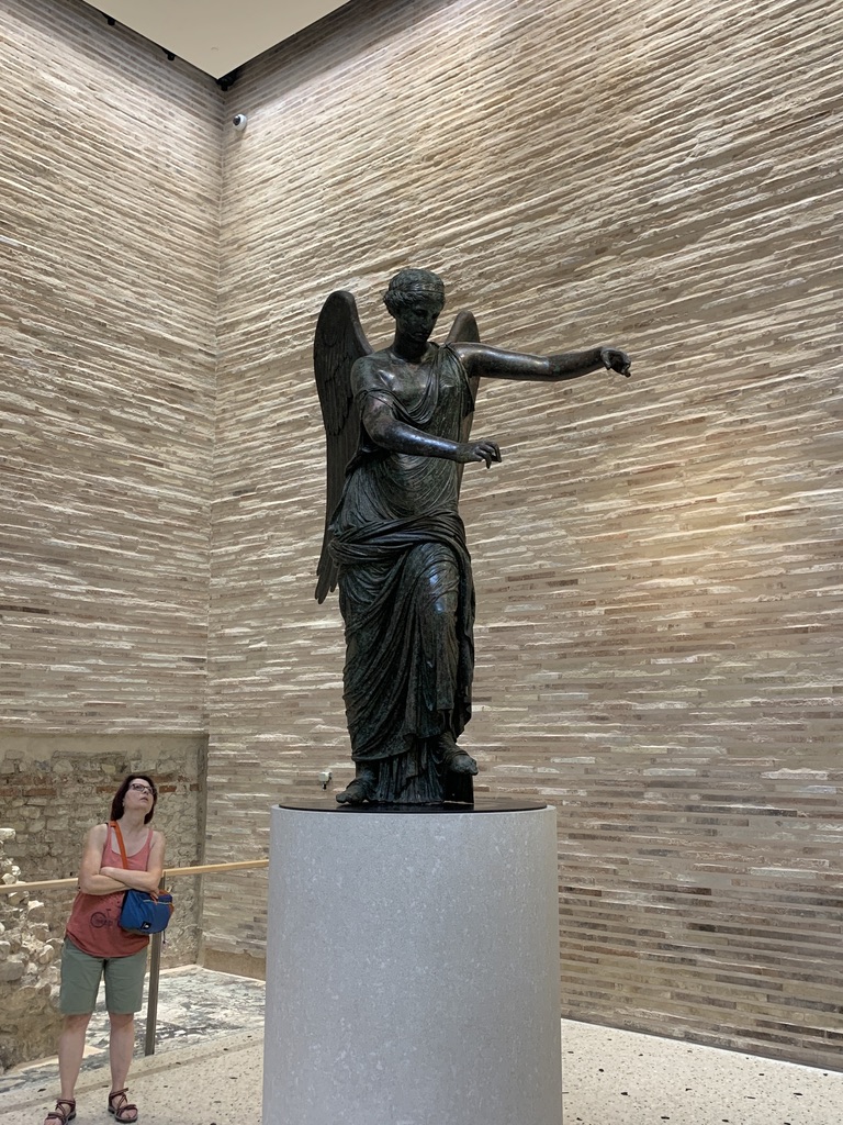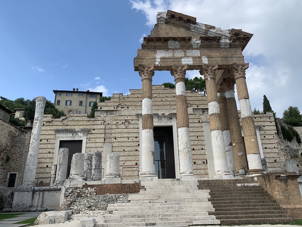 We were a bit concerned that the Brixia Roman archeological site might be closed since it was just a couple of days after Ferragosto, the big national holiday in the middle of the August vacations, but we were happy to discover that it was open. The ticket includes access to the site with a guide for a limited number of visitors. The site was built up over time and the site includes the republican sanctuary from the 1st century BC, the Capitolium from 73 AD, and some monumental remains from the imperial age. The highlight of the tour is the Winged Victory, a bronze stature from the first century AD. The statue was found in this area in 1826. The visit ended with a visit to the remains of the Roman theater which was built between the 1st and 3rd centuries AD.