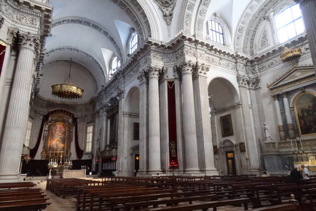 From the Torre, we made our way to Piazza Paolo VI, also called Piazza Duomo. We stopped briefly in the Duomo Vecchio / Rotondo, built in the 11th century with restorations in the 16th and 18th centuries, and then spent some time in the Duomo Nuovo, Our Lady of the Assumption, built between 1604 and 1825