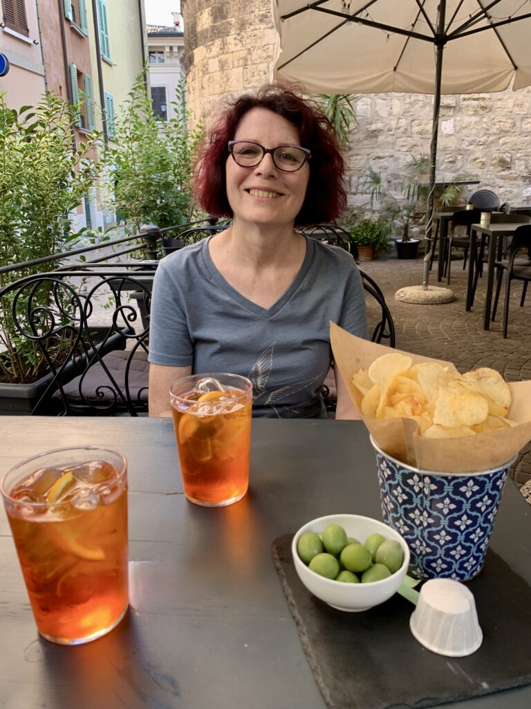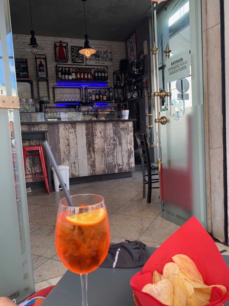 After our explorations it was time for aperitivo. We had a very nice Aperol Spritz with chips and green olives at Torre d’Ercole