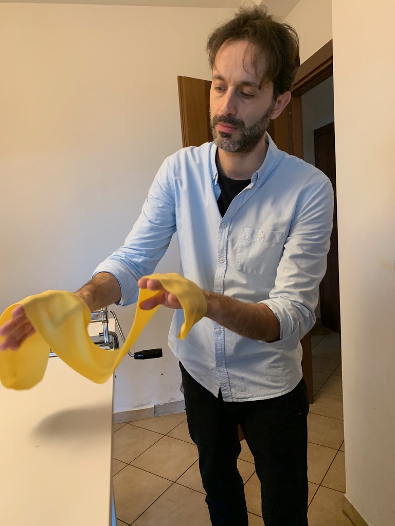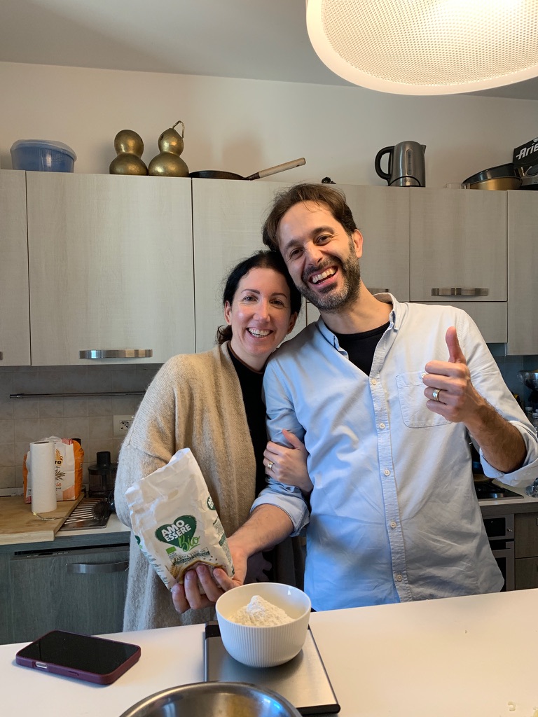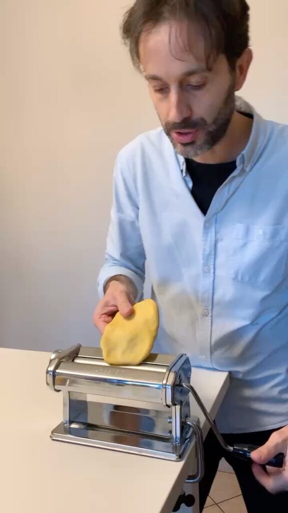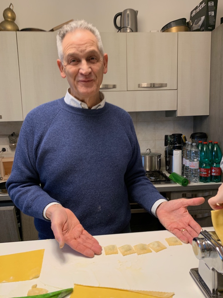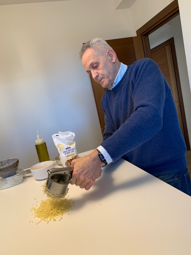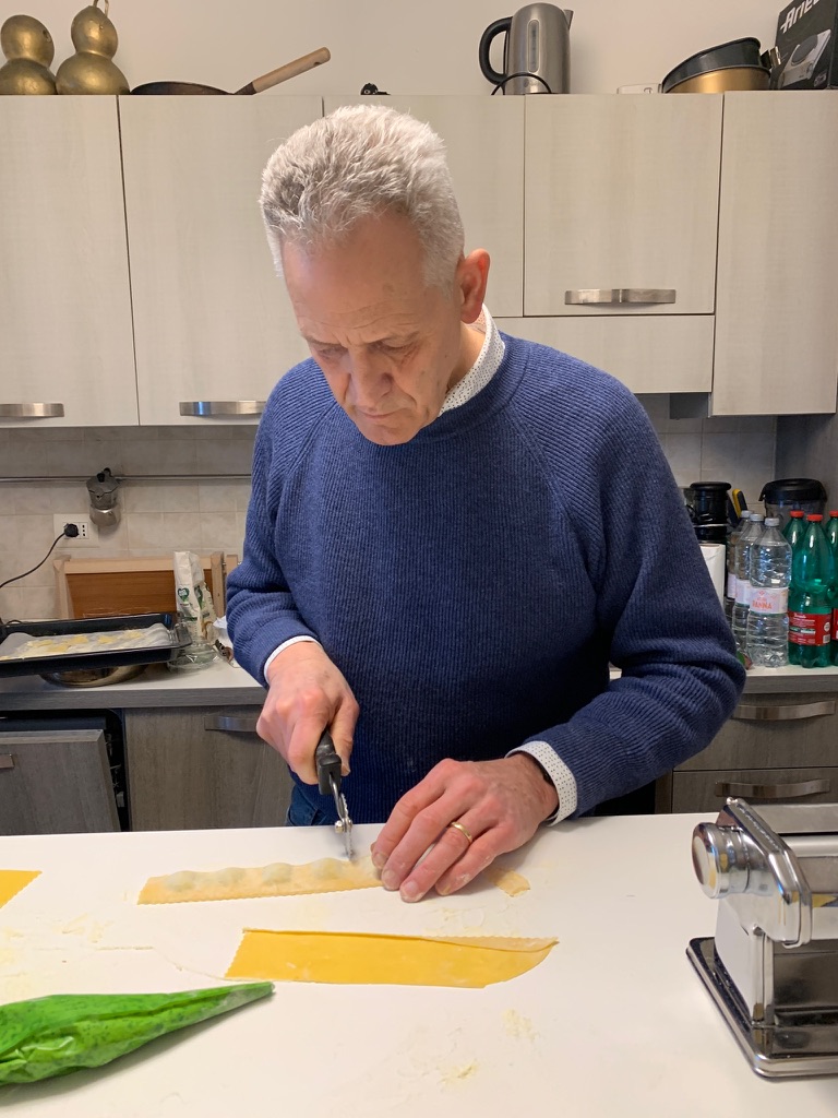 The Tandem Spirits have made pasta in the past, especially James who is a talented former professional cook. In 2020 we made tortelli in Parma; however, living in the center of Foligno we have not made pasta since we arrived here 12 years ago. One reason is the difference in flour. In the US there is cake flour, all purpose flour, bread flour and whole wheat flour. The system in Italy is quite different, flours are given a number from 00 to 2, and integrale (whole wheat) which indicates different gluten percentages. When we saw an announcement for a pasta class in Foligno, we signed up immediately.
