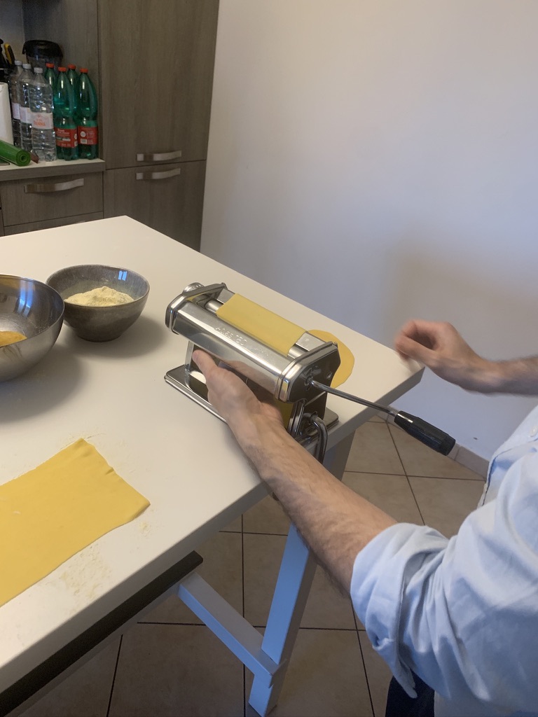 Now it was time to roll some pasta and make ravioli. Ismaele recommended cutting the pasta sheets into smaller sections as we went along to keep the sheets from becoming too long and unmanageable.